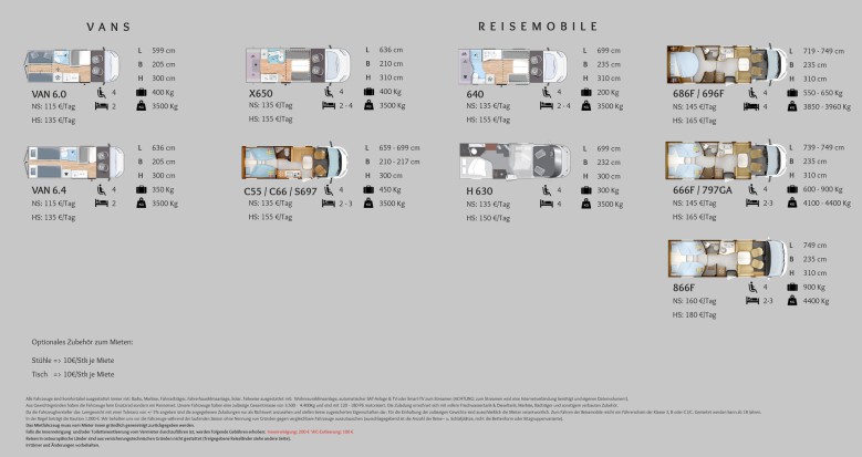 Welche Fahrzeuge, mit welcher Ausstattung, tatsächlich in der Vermietung sind und zur Verfügung stehen erfahrt Ihr von unseren Mitarbeitern.